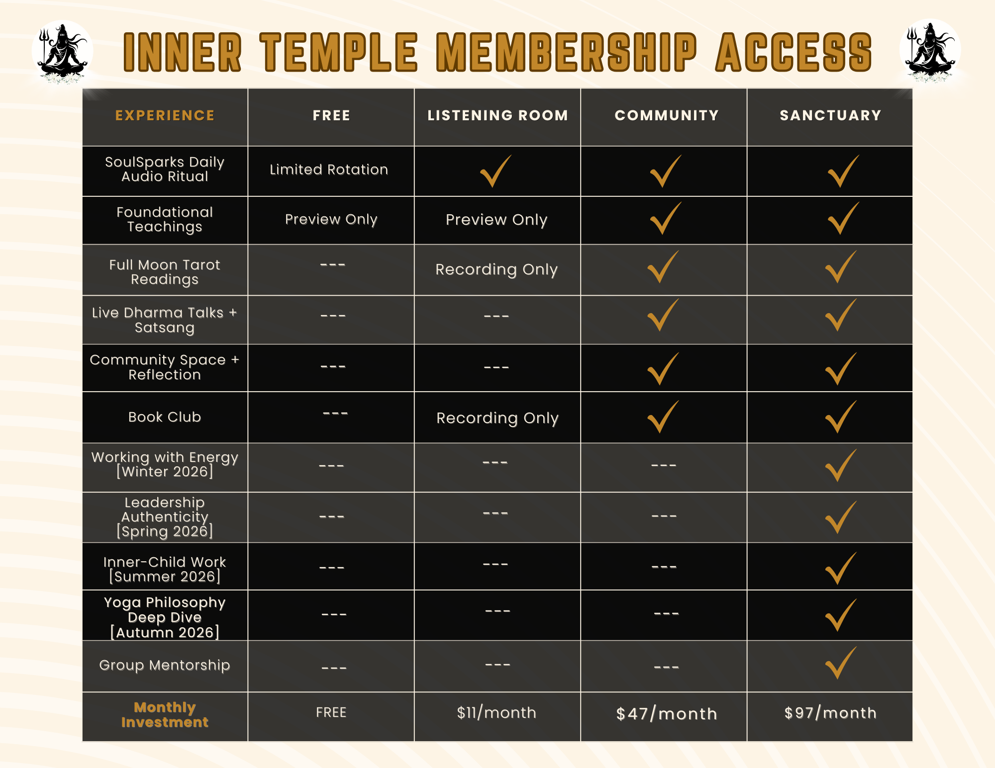 Inner temple membership tiers